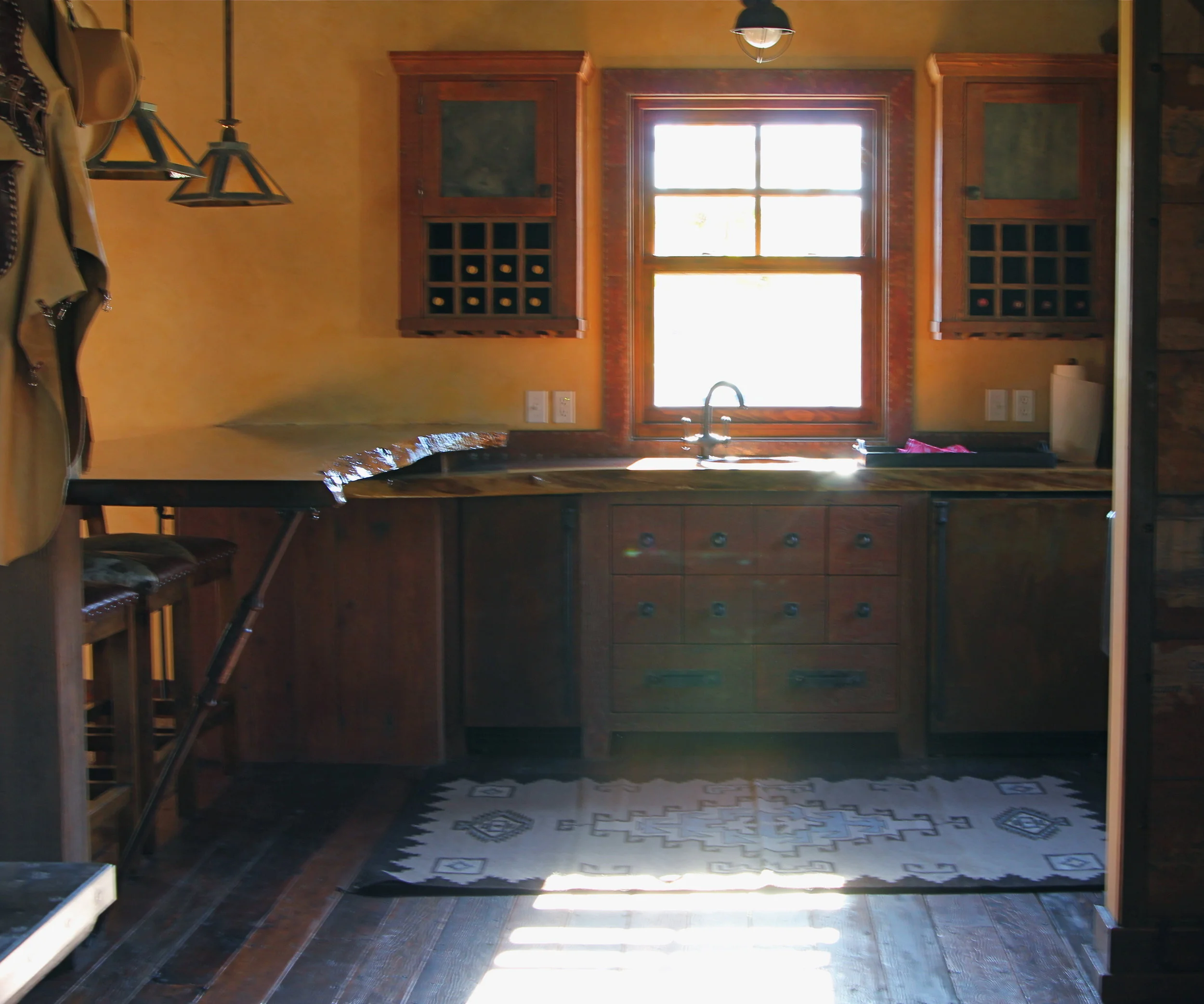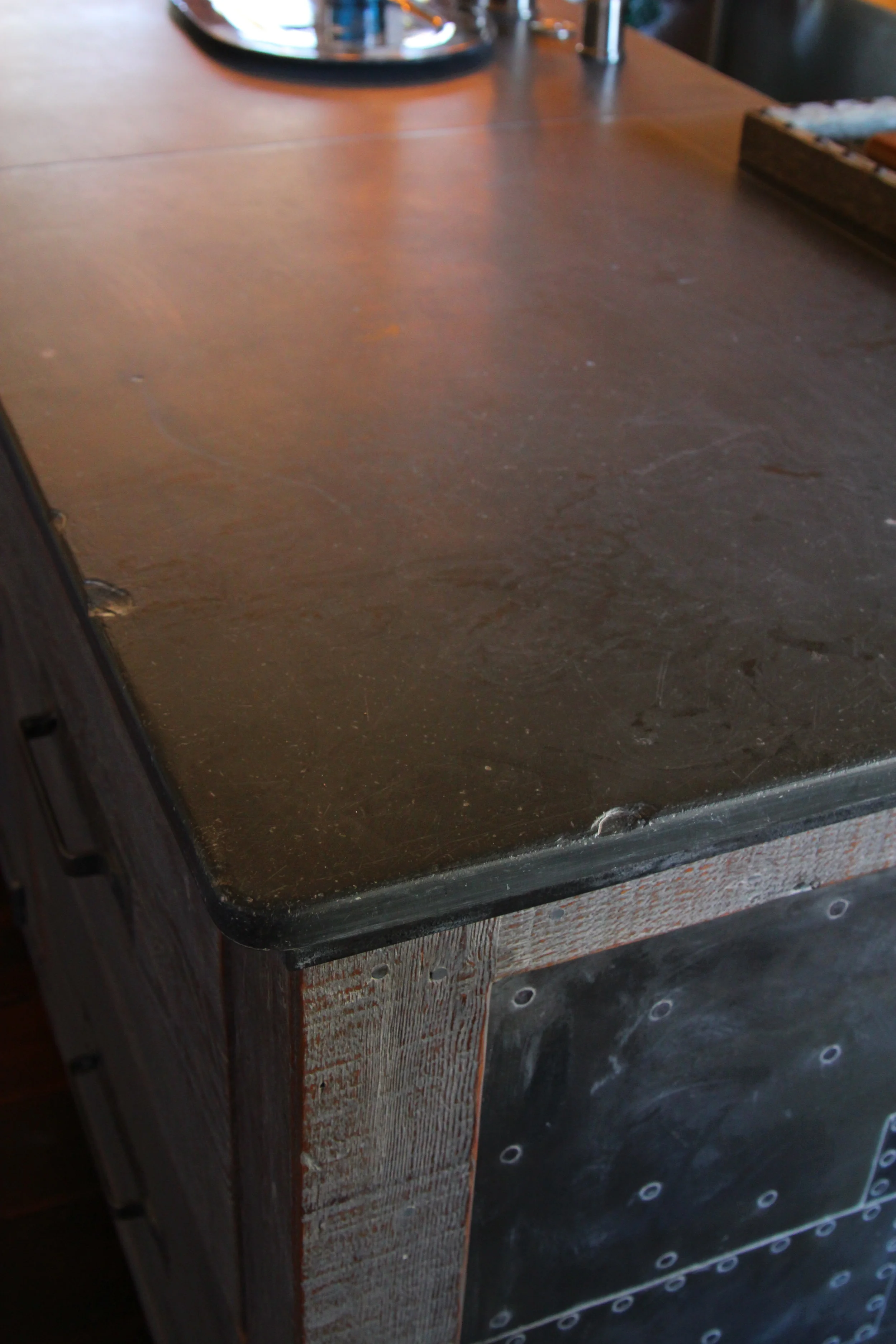 Counter tops made from reclaimed pool table slate (above).Bar area. Black walnut counters (by others).