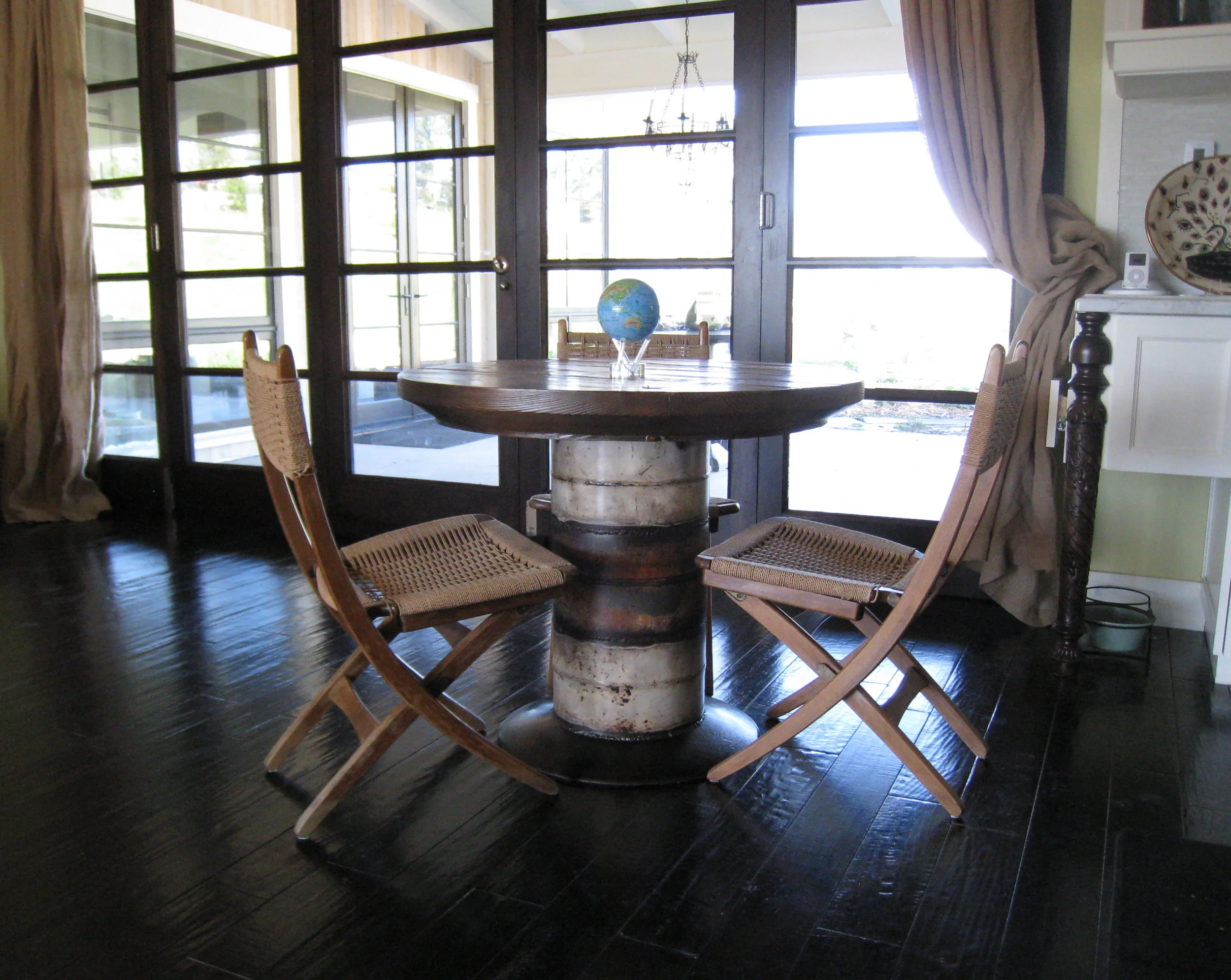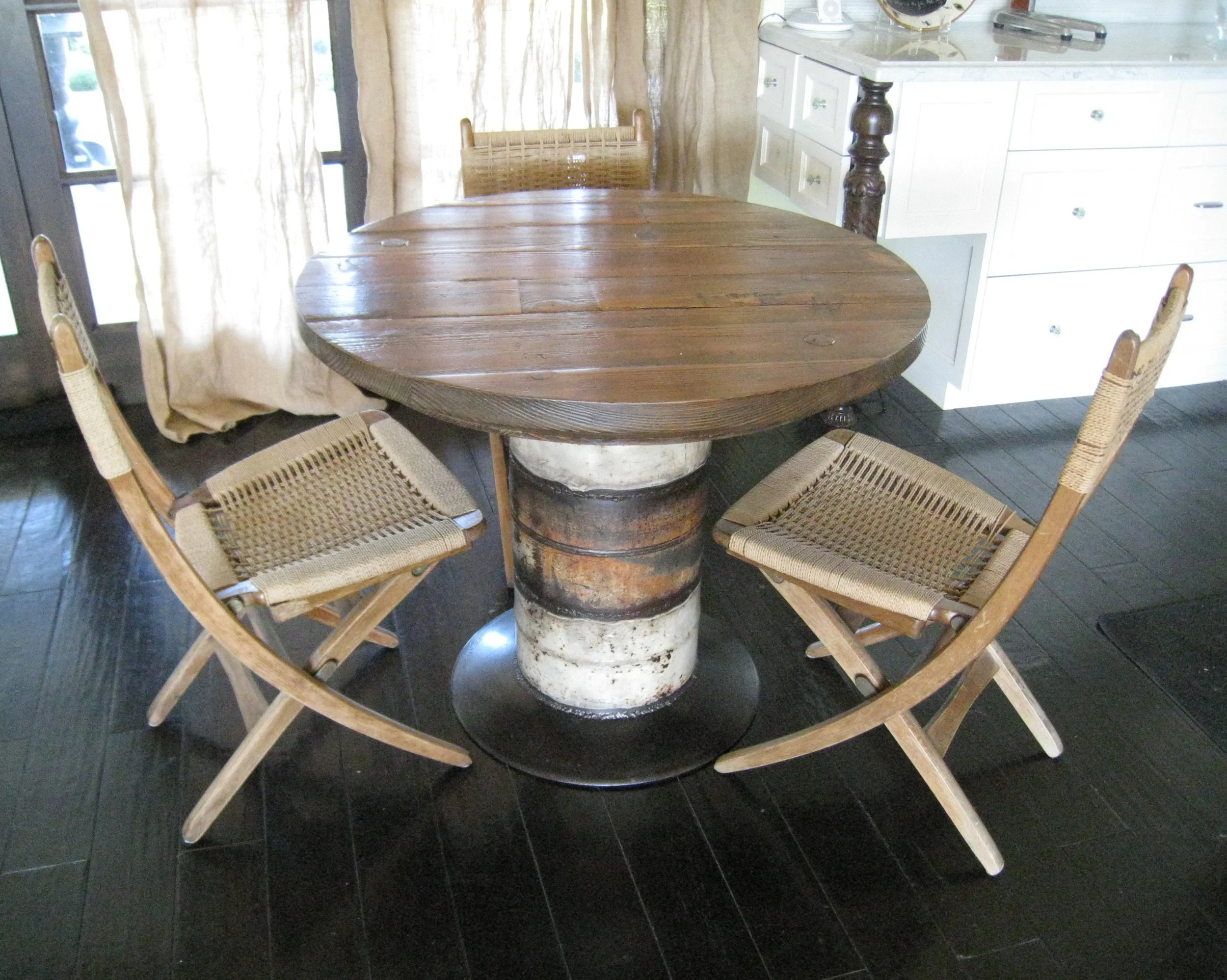 October 02, 2010 Propane Tank Table October 02, 2010/ Ben Riddering This table base was made from old propane tanks (cut and welded end-to-end). The top was made from reclaimed douglas fir sign posts.