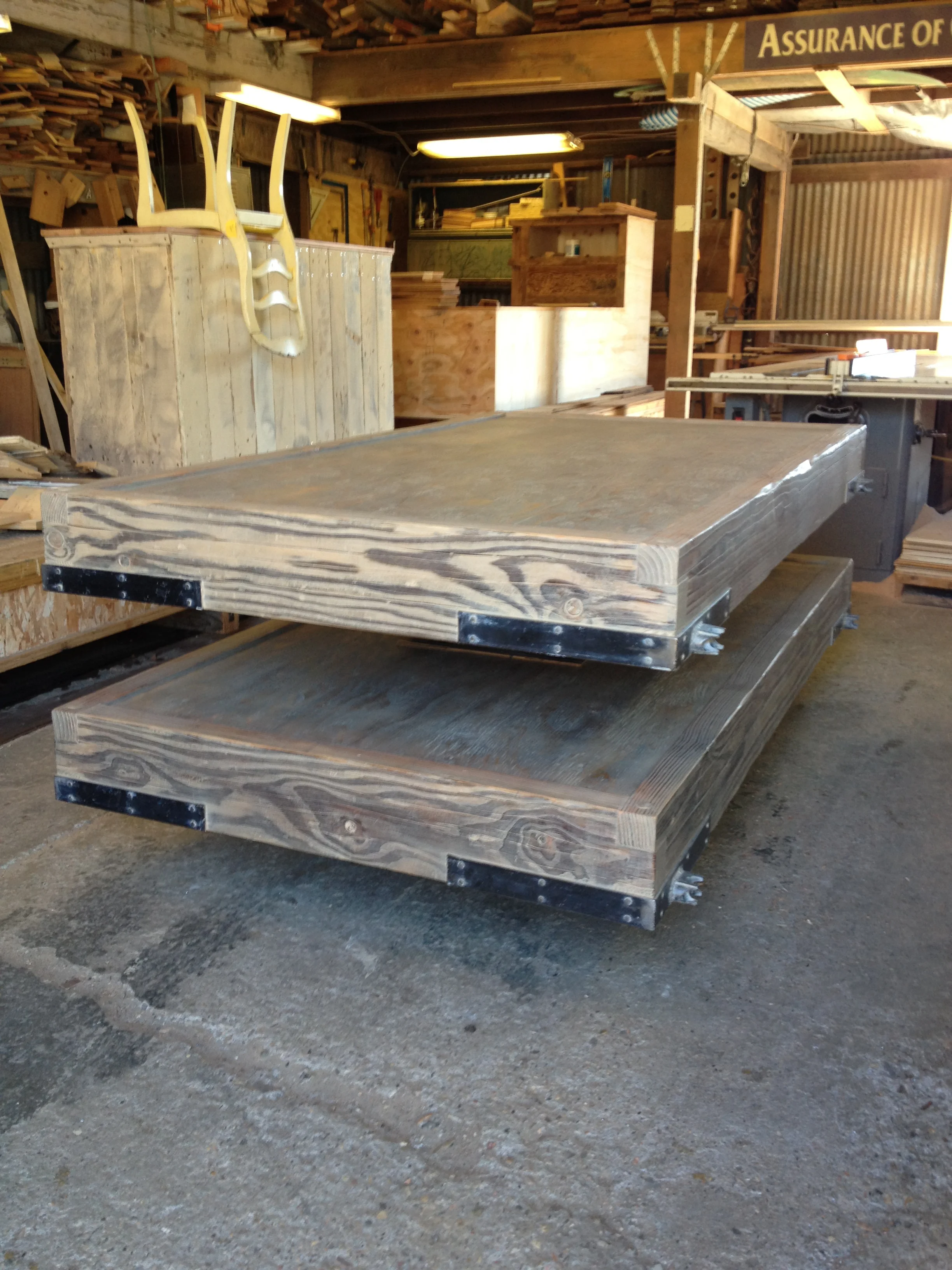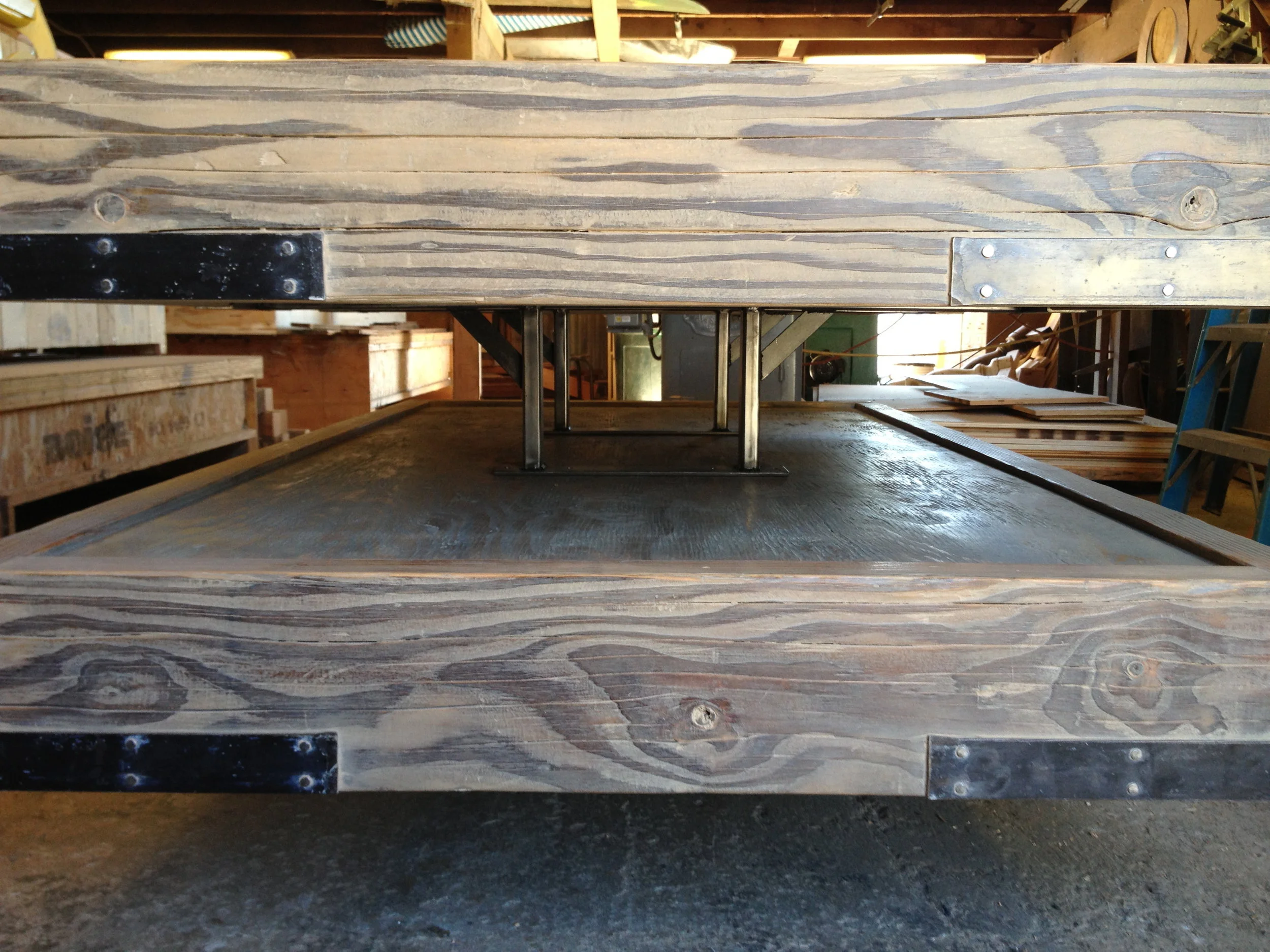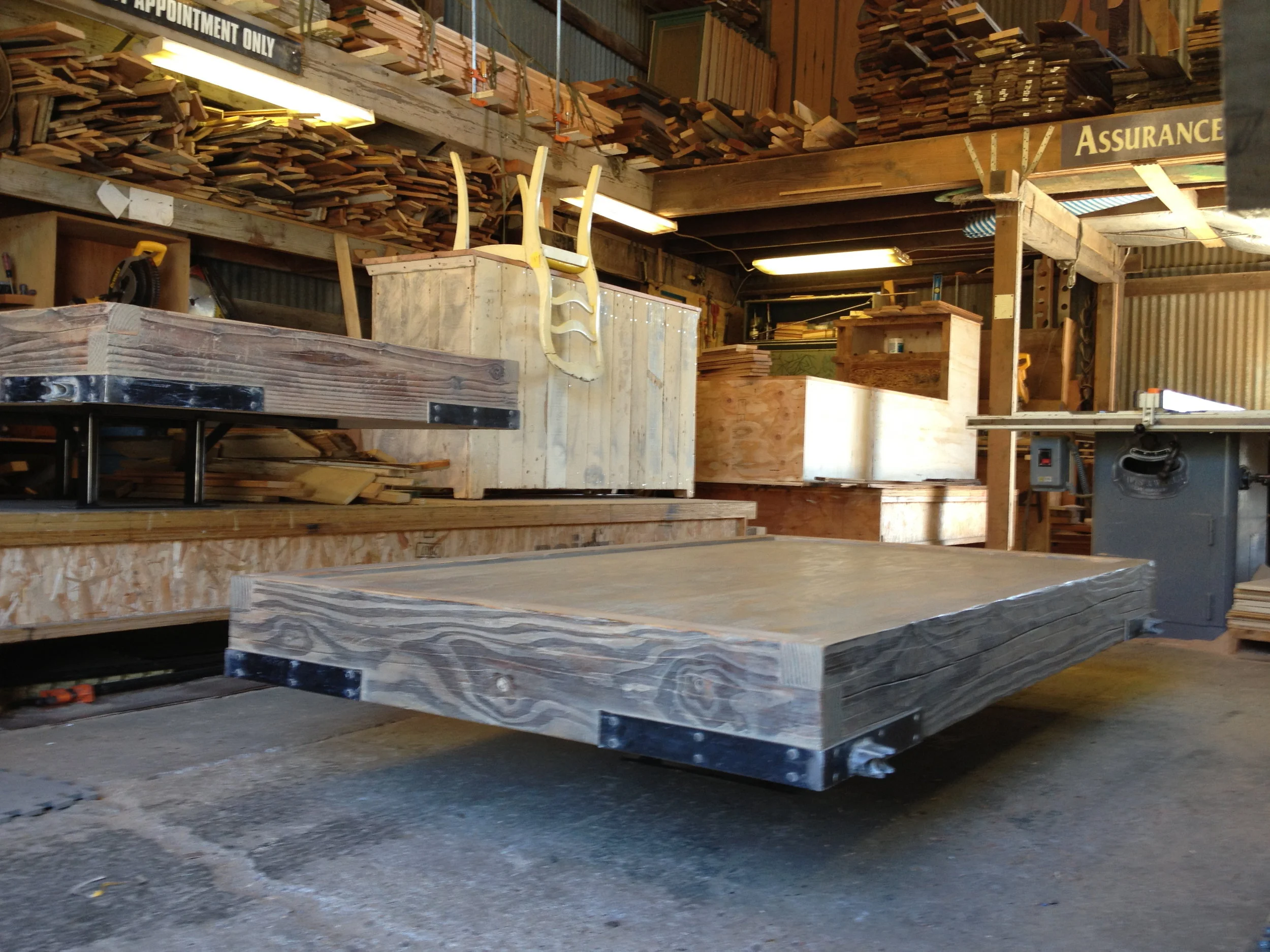 /These bed platforms are made to look like they are floating (no legs--right?). They will have the traditional hanging ropes at each corner of the bed to appear like they are hanging from the ceiling, but the client was unsure of the ceiling structure, so I welded steel bases for them. This was challenging because the bases had to be small enough not to be seen, but large enough to support the bed.
