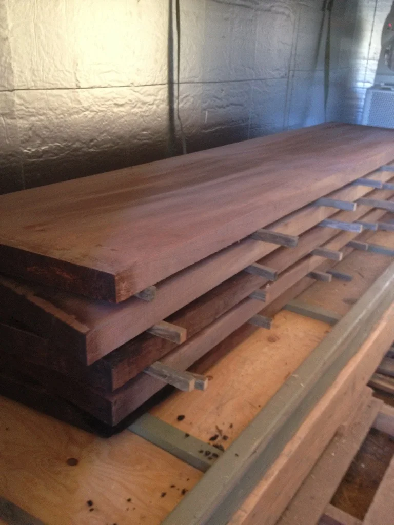 August 29, 2013 Sequoia Redwood August 29, 2013/ Ben Riddering 2 x 18 sequoia redwood slabs into the dehumidifier kiln today. I'm drying these for a buddy. They are over 50% mc right now.