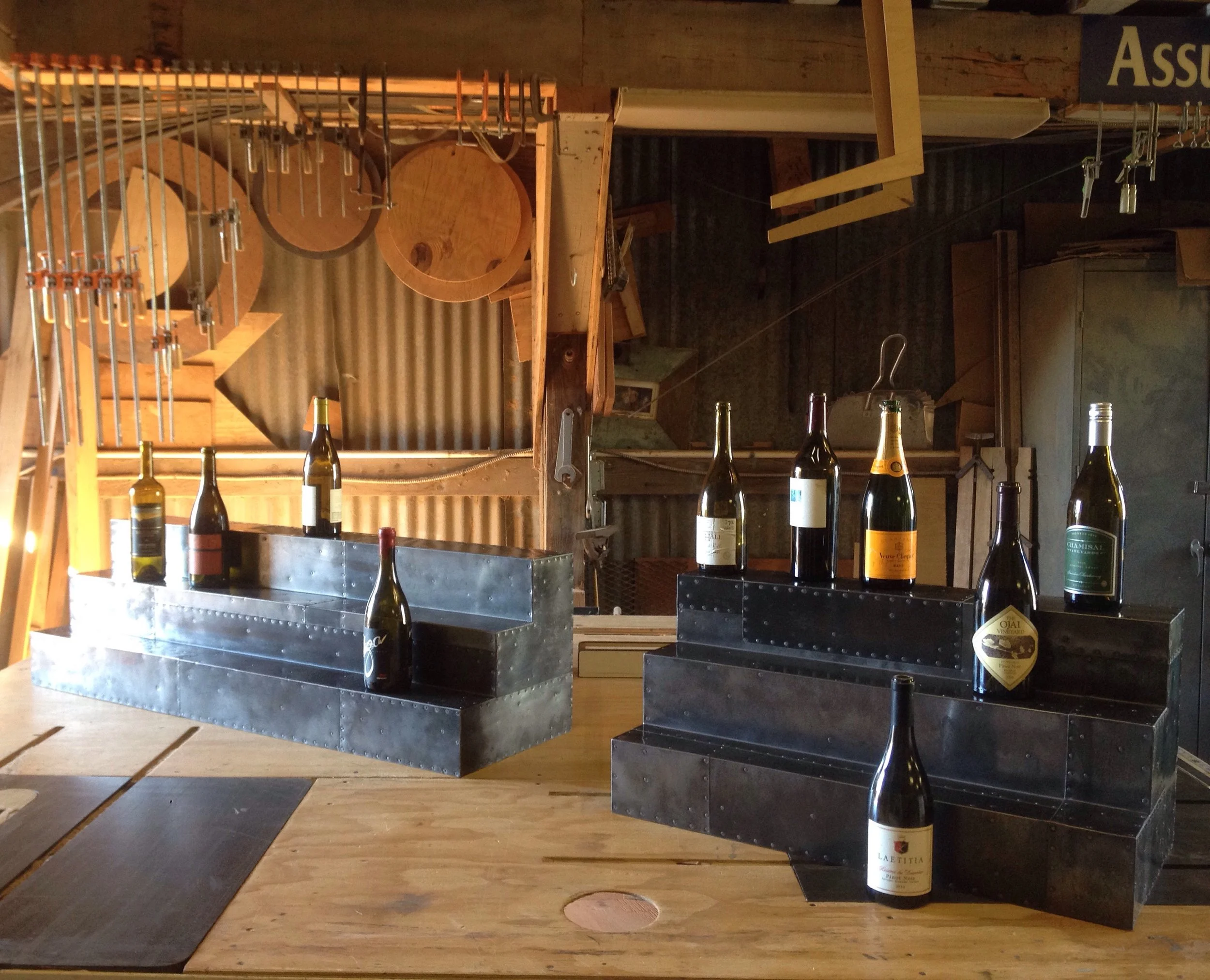 December 16, 2015 Tiered Wine Bottle Shelving December 16, 2015/ Ben Riddering Steel-clad wine bottle shelving for a venue in Paso Robles.