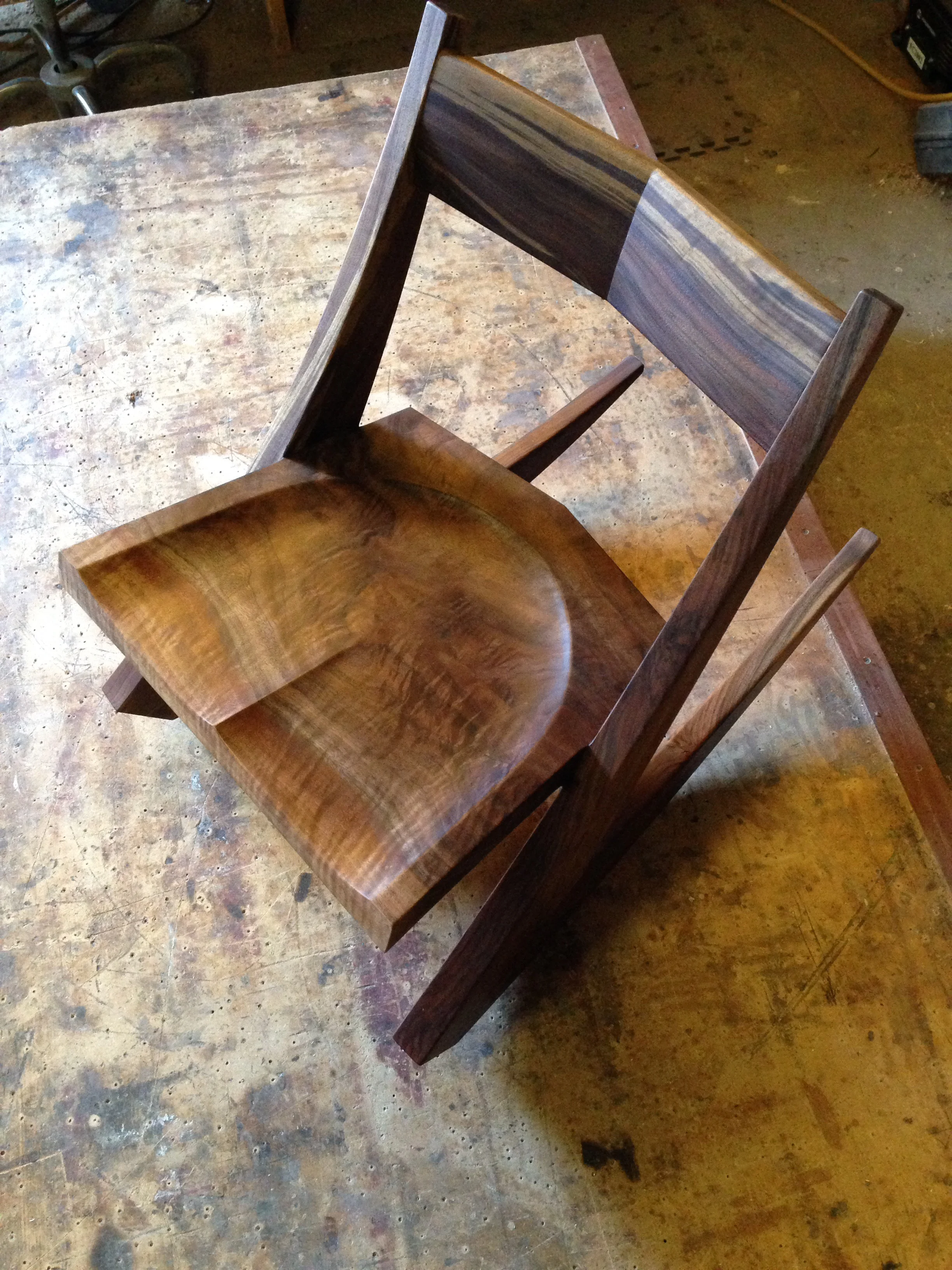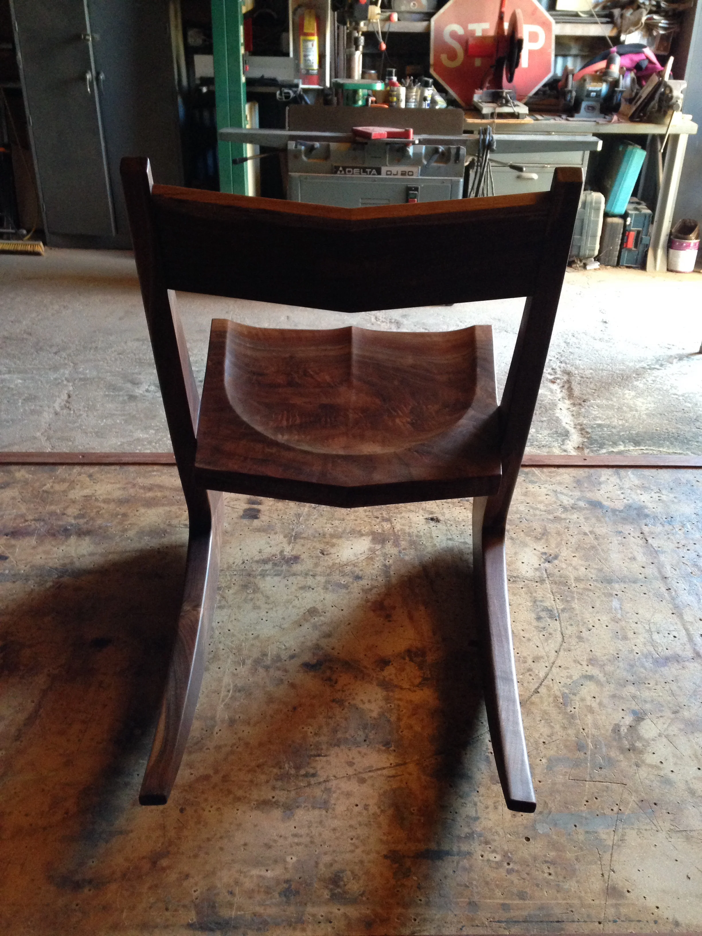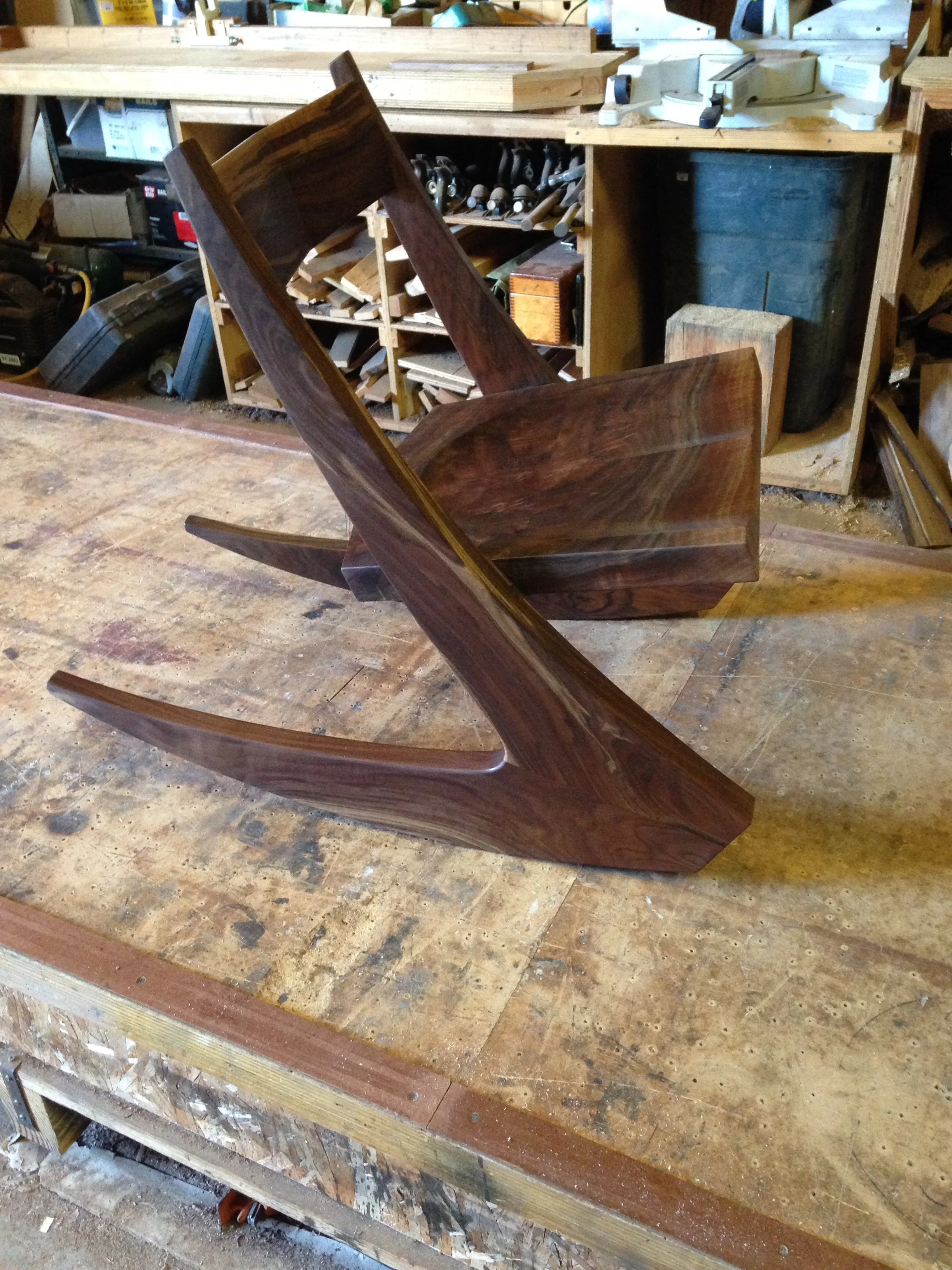 June 24, 2016 Walnut Rocking Chair June 24, 2016/ Ben Riddering First coat of oil on this Hairpin Rocker. Made from Claro Walnut.