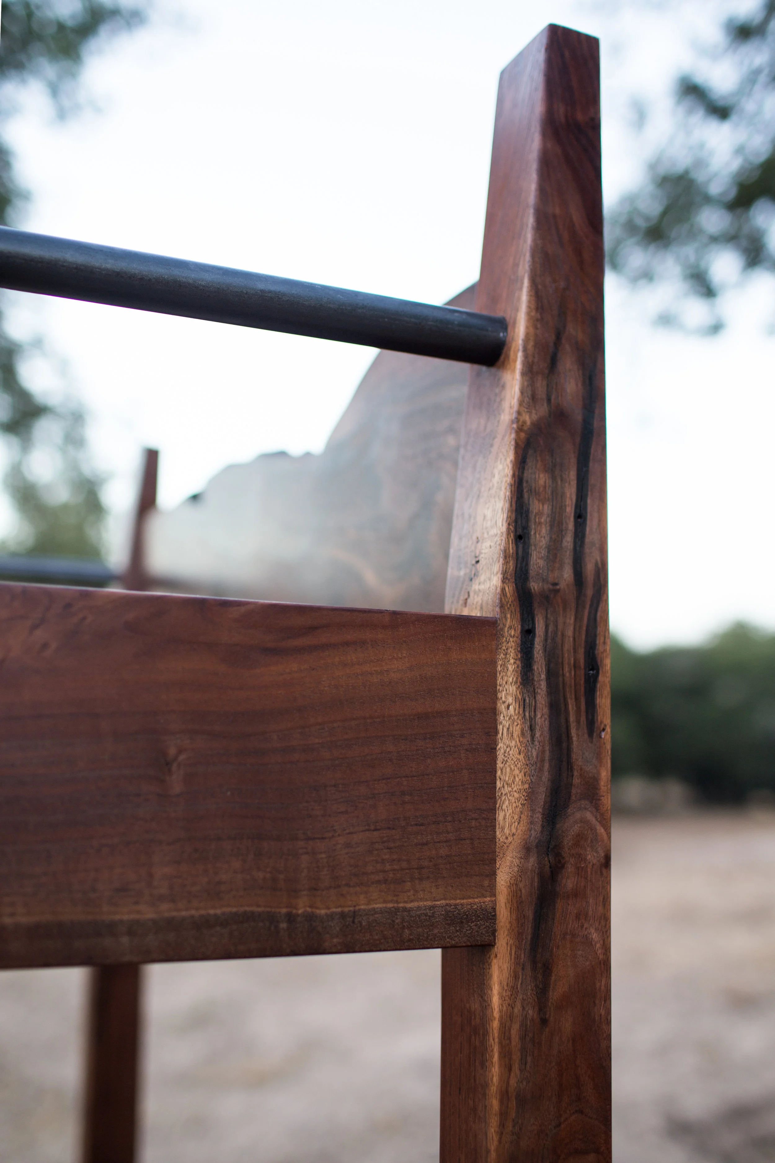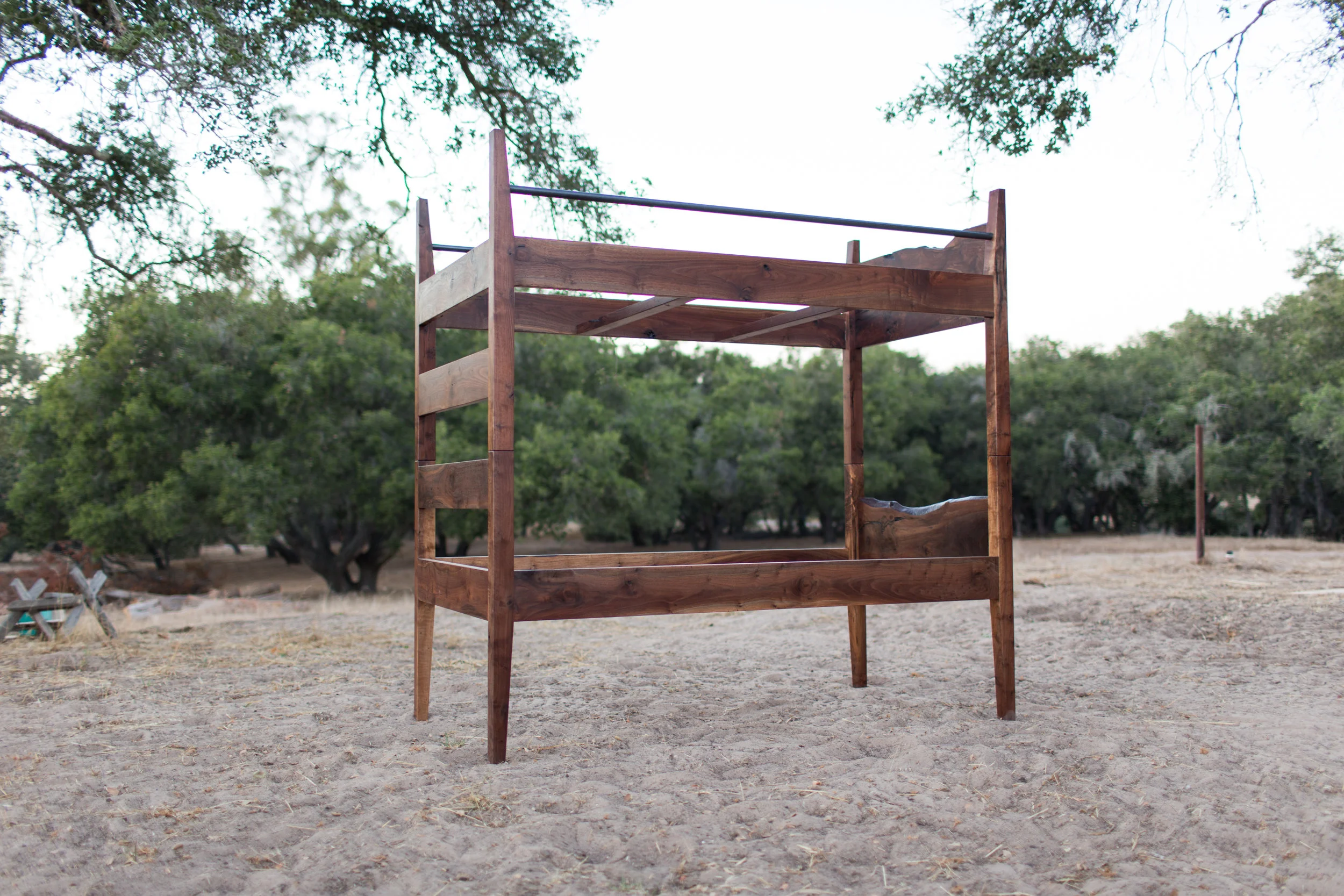 /Finally finished my boy's bunk beds. We used walnut that I had rejected for other projects (pieces with bug holes, big structural cracks that needed to be filled with epoxy, extra sappy pieces, etc.). And we incorporated a live edge into each headboard. The lower bunks are up high so that we can eventually build a bank of drawers to put under there.